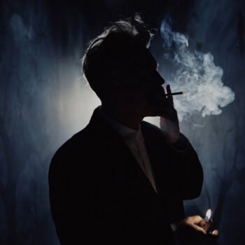 A mysterious scene unfolds in the smoke, where shadows of silent thoughts reveal hidden meanings and unspoken emotions.